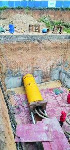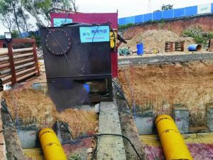 本项目位于三亚市崖城G98高速互通位置,整个互通由于科技城建设,增加高架桥,桥墩建设处有多处会伤及之前所建的DN1000、DN1200自来水管道,故崖州区自来水厂为了配合科技城的建设,将3条并排给水管道给予重新规划改建,我司承接了其中穿越原高速互通的顶管穿越部分,三条管道改造顶管部分长度2200米,由于工期紧、任务重,我司采取了人工液压和机械顶管双重工艺施工,本次在施工中,我司采用了DN1000/DN1 200岩石破碎机头作业施工,但是在施工过程中遇到了特殊地质情况,那就是进洞后都很顺利,但是机头在顶进了50米左右到达高速路面下时突然地质情况发生了变化,由原来岩石强度达到60兆帕,忽然变成了粘泥地质,当时就导致电流居高不下,进度几乎没有,经过工程部技术人员激烈讨论后,给出了一系列方案,最终采取在机头焊接不锈钢刮刀等措施,克服了在狭小的空间里作业加工辅助设备等困难后,得以让顶进顺利进行;人工顶进部分也是使用了风枪、水钻、劈石机等工艺。